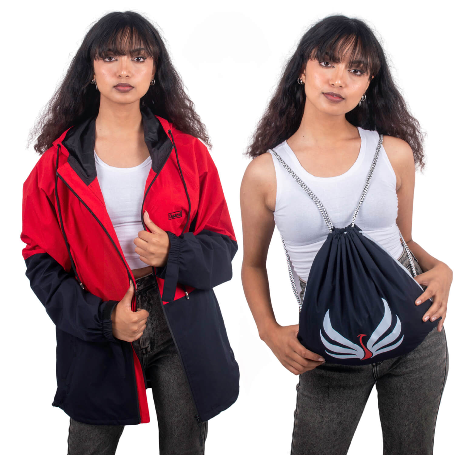 Daamicha Convertible Ladies Water Resistant Jacket to Bag (Red Color).